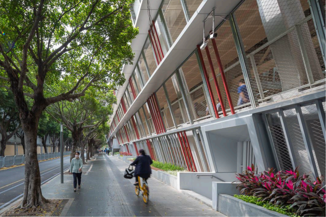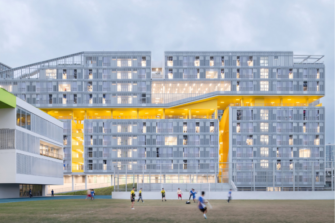 何健翔聚焦紅嶺實驗小學(xué)、紅嶺高中藝體中心與深圳美術(shù)學(xué)校三個項目,系統(tǒng)展示了高密度校園的解題思路。紅嶺實驗小學(xué)通過“雙復(fù)形”內(nèi)部庭院,在有限密度中編織出充滿活力的兒童社群空間;紅嶺高中藝體中心以“空間織造”策略回應(yīng)原始山體地形,實現(xiàn)建筑與自然肌理的有機縫合;深圳美術(shù)學(xué)校則以大膽的架空操場釋放地面空間,重構(gòu)了校園與城市的界面關(guān)系,為高密度城市中的校園建設(shè)提供了兼具在地性與前瞻性的解決方案。