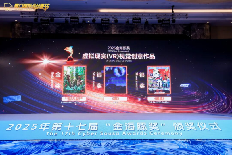 10月31日,由廈門市人民政府主辦的2025第十七屆廈門國(guó)際動(dòng)漫節(jié)“金海豚獎(jiǎng)”頒獎(jiǎng)儀式在廈門隆重舉行。由湖北聯(lián)投明誠(chéng)文體旗下聯(lián)影創(chuàng)藝聯(lián)合出品的全新森林主題VR作品《雨林奇遇》,在本次大賽中斬獲最高榮譽(yù)——“金海豚”視覺創(chuàng)意金獎(jiǎng)。