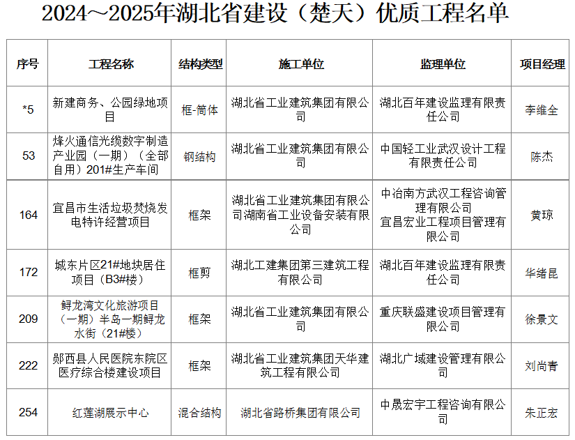 聯(lián)投湖北工建承建的7個(gè)項(xiàng)目榮獲“楚天杯”